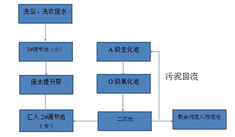 1)洗浴洗衣廢水生化處理工藝流程(A/0工藝):