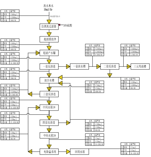 洗水來(lái)水為30m3/h,洗水來(lái)水TDS約為5000mg/l,pH值為10。