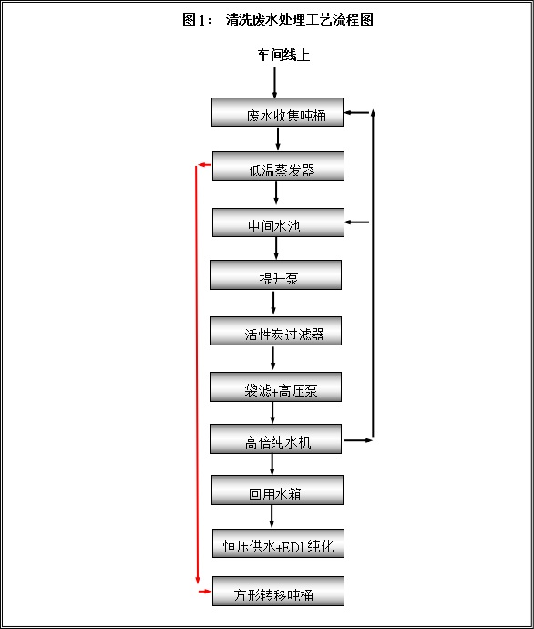 本公司受甲方的委托,本著對業主高度負責的態度,根據給排水有關設計依據,按國家相關的排放標準,為用戶提供較為理想、投資省、處理效果好的工藝設備。為嚴格遵守有關環境法規,保護環境,本著經濟建設和環境保護同步進行的“三同時”原則。經客戶處實地調研,并經多項工業污水處理成功的實踐經驗的基礎上,針對甲方水質的特點,采用“低溫蒸發+膜法純化+深度EDI純化工藝,該處理工藝較為簡單,操作運行方便,運行費用低廉,出水穩定。